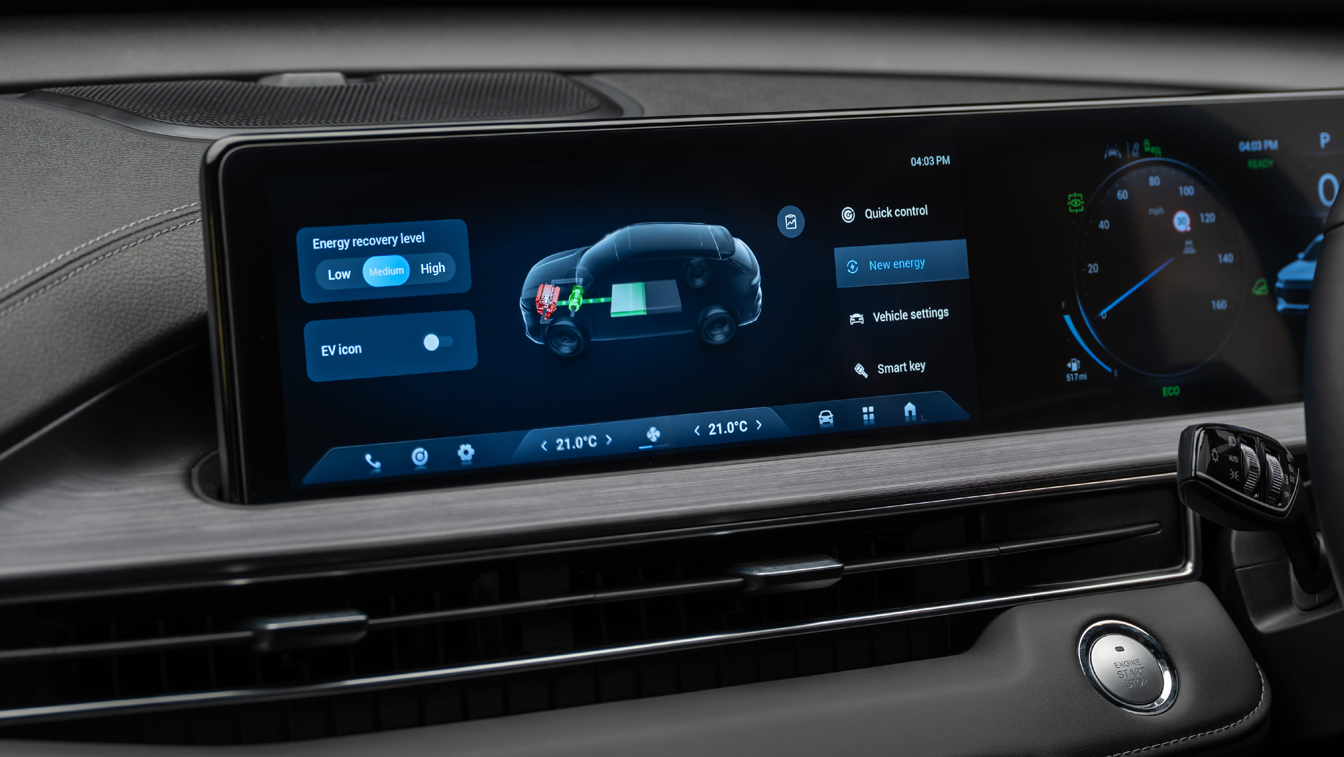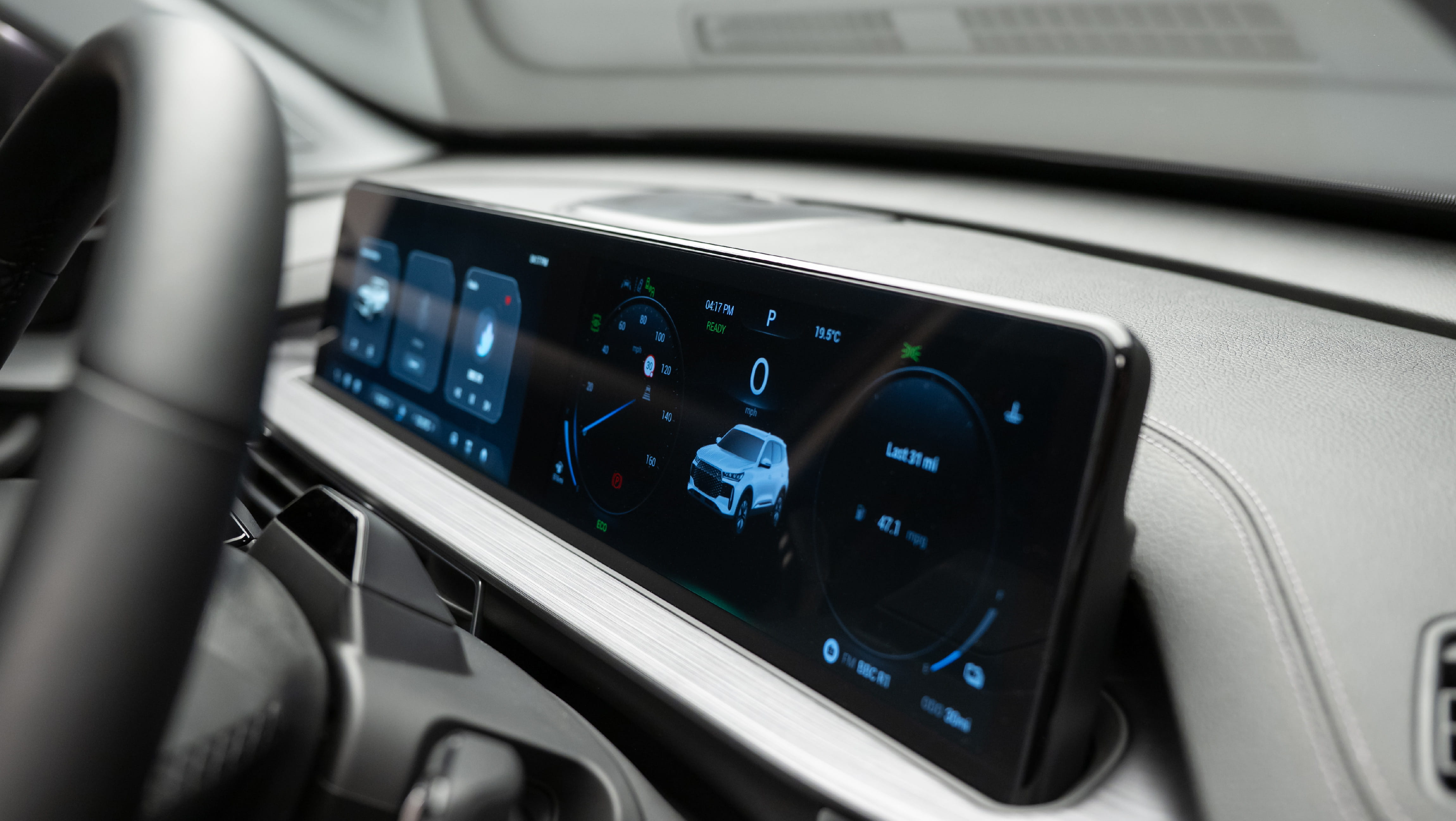 The digital cabin experience seamlessly integrates the dual 12.3” LCD driver display and touchscreen infotainment system.